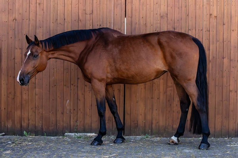 With Calice, we offer a twelve-year-old mare who truly deserves the title of a reliable horse in every respect. She is the kind of horse you can unconditionally rely on – whether in daily training, on a trail ride, or in the competition arena. Calice is a true teacher over jumps: preferring to be a bit too calm rather than too hasty, always focused and composed. Her experience up to the L class makes her the ideal partner for beginners, amateurs, or riders looking to return to competitive riding – without compromising on safety and confidence. Whether in the field, in the arena, or at a competition – Calice remains calm and dependable at all times. She is relaxed both alone and in a group on the trails, giving her rider the reassuring feeling of being in balance and harmony at all times. Here at the stable, she has won everyone's hearts with her friendly nature and genuine character. Anyone who meets her immediately feels her calmness, trust, and special aura. Those looking for a horse that offers safety, joy, and trust day after day will find a loyal partner for life in Calice.