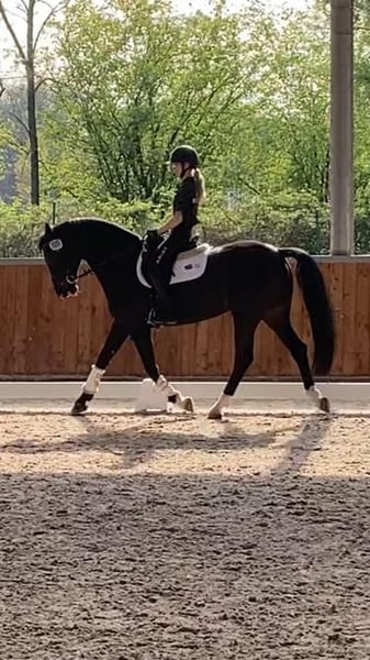 A beautiful Holstein mare, born in 2008, is for sale. This elegant black mare impresses with her rideability and jumping ability. She is a reliable partner for the ambitious rider and impresses with her willingness to perform and her pleasant temperament. She is my granddaughter's teacher and has achieved many successes with her, such as placings at the German Four-in-Hand Championships, State Championships, District Championships and various other competitions. Only to be given into loving hands! If you are interested in this talented Holsteiner mare, please do not hesitate to contact us.