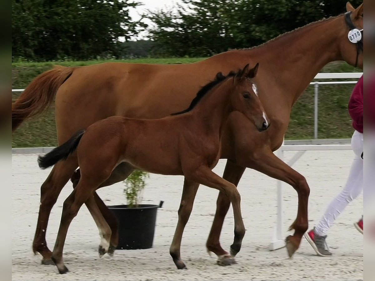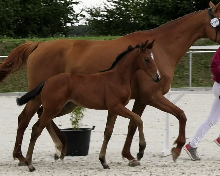 This outstanding filly achieved reserve champion status at the Holsteiner Foal Show in Ladeburg and is thus qualified for the Holsteiner State Championship in Elmshorn. She is among the best foals of her age group! The mare is bred with a focus on dressage and possesses three very good basic gaits. Particularly noteworthy is her excellent trot: elastic, ground-covering, with powerful push-off and always in rhythm. She is correctly built, beautiful, curious, and always friendly in handling. A horse for the future! With her uncomplicated nature and high-quality lineage, she is the ideal young horse for ambitious amateurs as well as for professional sport. Completely healthy, from a renowned breeder with optimal care, correctly dewormed and presented to the farrier. We look forward to your interest and would be happy to show you the foal on-site! Contact us also via WhatsApp: +49 176 55323449. The sire of this special foal is the Dutch shooting star Extreme US (Stallion Station van Uytert/Paul Schockemöhle). Extreme is a highly rated movement stallion with outstanding rideability (dream score of 10) and impressive achievements: winner of his stallion performance test, winner of the Pavo Cup 2023, winner of the KWPN Stallion Competition 2023/2024. His offspring include numerous winning foals, championship foals, and spectacular auction foals. The maternal lineage of our sales foal goes back to the founding sire Vivaldi and the sought-after jumping blood of C-Indoctro in the Holsteiner performance line 474a. This line is characterized by the international caliber of its many successful horses.