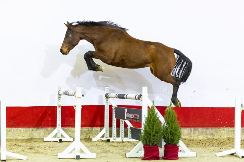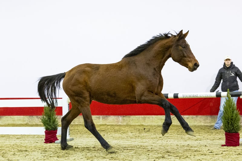 Charmint ist eine flinke und leichtfüßige Stute mit einem attraktiven Springstil. Sie zeigt Sorgfalt, Übersicht und einen leichten, natürlichen Absprung vom Boden. Sie bewegt sich mit gutem Körpergebrauch, was sie für den zukünftigen Sport sehr vielversprechend macht. Mit ihren Reflexen, ihrer Einstellung und ihrem modernen Typ ist sie eine junge Stute mit klarer Potenzialaussicht. Sie ist von Chopin VA, dem Casall-Sohn, der erfolgreich bis 1,60 m im Springen war und bekannt ist für seine Nachzucht mit Übersicht, Mentalität und Rittigkeit. Ihre Mutter Trixie hat bereits zwei Pferde hervorgebracht, die bis 1,40 m und höher springen, sowie den lizenzierten Hengst Quarz ASK, was die Stärke dieser Mutterlinie bestätigt. Charmint stammt von einem der größten und renommiertesten Zuchtbetriebe Deutschlands. Sie ist ungeritten und kennt nur eine Halfterführung. Da sie ausschließlich auf der Weide aufgewachsen ist, hatte sie ausreichend Zeit, um sich richtig zu entwickeln und Kraft in Körper und Beinen aufzubauen. Eine ehrliche und reine Stute, die nun bereit ist, mit der Ausbildung zu beginnen. Mit ihrem Typ, ihrem Springstil und ihrer starken Abstammung bietet Charmint hervorragendes Potenzial – sowohl für den Sport als auch für die Zucht.