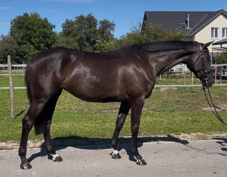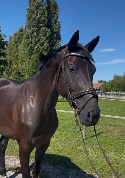 Four-year-old mare by Armand x Calido I from the Holsteiner Stamm 104A. She is currently 16.1 hh, very rideable, and has plenty of energy. Absolutely straightforward and fearless over jumps. We can easily see her as an amateur or junior horse. X-rays are available. Additional videos gladly provided via private message or at +49 177 2259981.