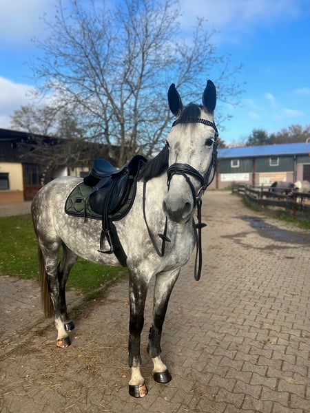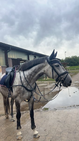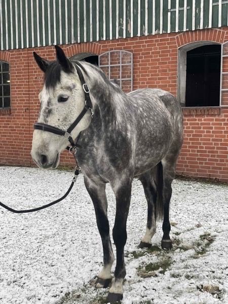 Springstute Holsteiner Jahrgang 2017 Zum Verkauf steht eine 2017 geborene Holsteiner Schimmelstute, abstammend von Crumble aus der Santhana von Lasino. Die Stute präsentiert sich mit einem korrekten Fundament, harmonischem Körperbau und ausreichend Rahmen. Sie zeigt sich rittig, aufmerksam und lernwillig und verfügt über gute Grundgangarten. Im Springen überzeugt sie mit Übersicht, Vermögen und einer vorsichtigen Einstellung, dabei stets regulierbar und konzentriert. Im täglichen Umgang ist sie brav und unkompliziert, kennt das Handling im Stall. Eine interessante Nachwuchsstute für den Amateur- oder Sporteinsatz mit Perspektive im Springsport.