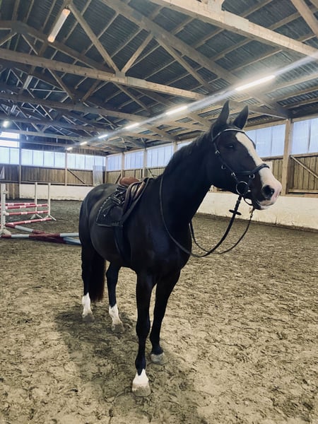 Z ciężkim sercem zdecydowałam się poszukać odpowiedzialnego właściciela dla mojej klaczy. Nie jest to sprzedaż pilna, oddam ją tylko wtedy, gdy znajdzie się dla niej dom na całe życie (lub z prawem pierwokupu), oraz ktoś, kto doceni ją i uzna za swojego nowego najlepszego przyjaciela. Cara ma prawie 9 lat i jest klaczą holsztyńską o wzroście 167 cm. Od stycznia do czerwca 2025 roku była w pełni jeździecko przygotowana i zrobiła duży krok w kierunku prawdziwego konia sportowego :). Z odpowiednim jeźdźcem robi wszystko. Niezależnie od dyscypliny – czy to ujeżdżenie, skoki, hala czy teren, czy spacery – kluczem jest pewny siebie człowiek u jej boku. Jest typową, klasyczną klaczą, bardzo dominującą, co może czasami sprawiać trudności w kontaktach i testuje granice. Jednak pod siodłem nie okazuje żadnych problemów i zawsze pracuje z motywacją i w pełni posłusznie. Jest też bardzo odważna i nieustraszona. W skokach czuje się jak ryba w wodzie i z radością pokonuje przeszkody z każdej sytuacji :). Na zawodach jeszcze nie startowała. Od kiedy ma 10 miesięcy, jestem jej właścicielką i bardzo mi przykro, że muszę przyznać, iż nie jestem dla niej odpowiednią osobą (jestem raczej ostrożnym jeźdźcem i w kluczowych momentach nie potrafię zapewnić jej bezpieczeństwa). Próbowałam różnych metod, aby się do siebie zbliżyć – dlatego zna też pracę według metod Parelli, a szczególnie praca na liberty sprawia jej dużą frajdę. Bardzo pragnę, aby znalazła swojego człowieka, który zaakceptuje ją taką, jaka jest, i doceni, jakim wspaniałym koniem jest. Wierzę, że z odpowiednim partnerem u boku, to konie potrafi przejść przez ogień. Mam nadzieję, że widać, iż ta sprzedaż jest dla dobra konia – bo bardzo mi zależy, aby znalazła swojego „partnera w zbrodni”, nawet jeśli oznacza to dla mnie konieczność jej rozstania. Cara jest zdrowa, zaszczepiona, regularnie odczuwana przez dentystę i osteopatę. Priorytet ma miejsce, nie cena. Bez handlarzy i szkół jeździeckich! Aby zapobiec turystyce jeździeckiej, pobieram 25 euro za jazdę próbną.