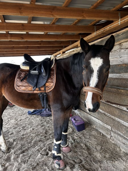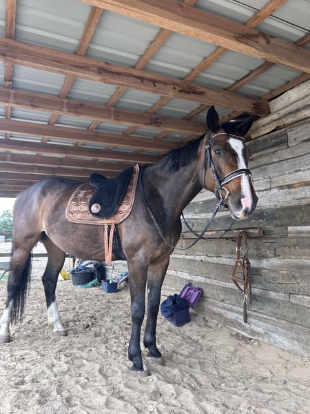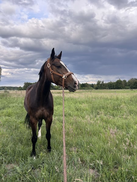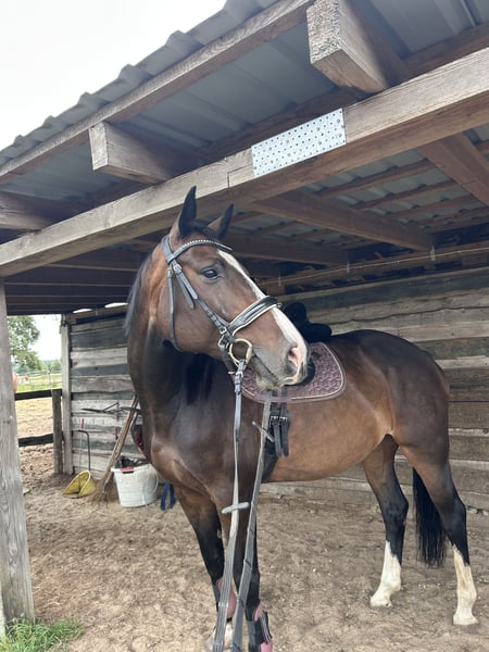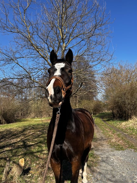 Con gran pesar, nos vemos en la necesidad de separar a nuestra hermosa yegua Holsteiner Ivy. Mide 1.68 m y nació en 2017. Cuando confía en su jinete, muestra un carácter maravilloso con el que se puede hacer todo. En el campo, es muy confiable y no se asusta ni se escapa si se asusta. Es una yegua de salto natural y disfruta mucho de ello. En 2025, sufrió una laminitis, por lo que estuvo en descanso. La laminitis la superó muy bien y su casco no presenta rotación. Lamentablemente, no sabemos exactamente qué causó la laminitis, por lo que ahora está en box, ya que sospechamos que podría estar relacionada con nuestro paddock en el paddock de pastoreo. Además, tiene una vieja lesión en el tendón del flexor en la pata trasera, pero no le limita en absoluto. Incluso hemos saltado con ella, y ella ha dado todo con mucho entusiasmo. Ha sido rehabilitada cuidadosamente y ahora vuelve a estar en plena forma. En la disciplina de doma, estamos trabajando en una correcta conexión. Ella aprende muy rápido y estamos en un camino muy prometedor. Para la reproducción, también sería interesante; si hay interés, no duden en contactarnos. Disponemos de radiografías. Si se han enamorado de nuestra hermosa yegua, les invitamos a visitarla en Phöben. :) La entregamos con todo el equipo completo incluido. También disponemos de vídeos de salto.