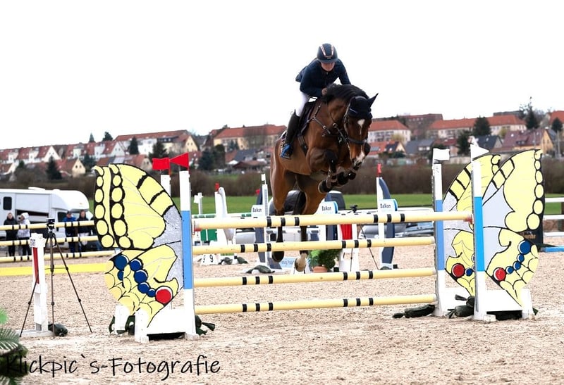Se vende un caballo castrado Holsteiner de 11 años y 188 cm de altura, hijo de Lenett x Caretino. A los 7 años ya estaba colocado en S, y a los 9 años también en S con amazona, pero debido a su tamaño, es más adecuado para un hombre, por lo que ahora se pone a la venta. Actualmente tiene 125 cm de colocación, y no ha competido en los últimos 2 años debido a mi embarazo y la falta de tiempo. Un caballo con mucho potencial, calidad y mucho galope. Para más información, no dude en llamar al 0176 20305192.
