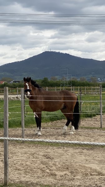 With a heavy heart, I am offering my 13-year-old gelding as a leisure horse. He stands approximately 16.1 hands tall, is very gentle and good with children, although he is not a dedicated children's horse. He prefers to go out on rides, whether alone or in company. Unfortunately, due to a recently healed injury, he is no longer allowed to jump, which is why I am offering him up. He has also competed in show jumping events before and has always remained calm and relaxed. I am looking for a home with a leisure rider who enjoys trail riding and would work with him on the arena or in the indoor riding hall no more than twice a week. He also enjoys ground work and learns quickly in this area. For serious inquiries, I can provide further information about his condition. Since we are currently only walking and he is to be re-trained in four weeks, a trial ride is only possible to a limited extent. However, a meeting can be arranged for serious interested parties. ❗️He is not available to dealers or riding schools.❗️ If you are interested, please feel free to contact me via WhatsApp or call me at 0176/62463984.