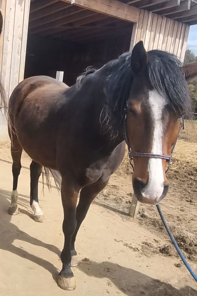 Ich biete zunächst nur eine Pflegebeteiligung (kostenlos) oder Reitbeteiligung (70€) die sich ihn erst wieder antrainieren muss ( in dieser Zeit kostenlos) an meinem Wallach etwas nördlich von Schwäbisch Gmünd an. Eine kleine Halle, ein wetterabhängiger Platz und schönes Ausreitgelände vorhanden. Nach Absprache 2-4x wöchentlich. Keine Turnierteilnahme möglich. Cardhu ist ein Holsteiner Wallach, 2013 geboren, Barhufer und 1,70m. Es ist ein frecher, meinungsstarker und aufgeschlossener Wallach der Aufmerksamkeit sucht und gefallen möchte. Sollte er sich ungerecht behandelt fühlen oder keine ausreichende Führung bekommen, so zeigt er dies auch und wird stur. Er reagiert aber sehr gut auf Vertrauens- und Bodenarbeit. Er wird momentan nur 2-3x die Woche mit der bereits bestehenden Pflegebeteiligung (Mittwoch, Donnerstag und Samstag momentan vergeben) bewegt, genießt seine Herde und geht ansonsten mit mir ab und zu spazieren. Er braucht eine geduldige, einfühsame und sehr konsequente Person an seiner Seite, die deutlich aber weder zu grob noch ungerecht sein sollte. Er freut sich über neue Aufgaben und ist in der Regel motiviert dabei, kann sich aber nicht so ewig konzentrieren. Er ist aufgrund seines Charakters und Ausbildungsstandes (wenig geritten und etwas im Gelände unterwegs gewesen. Seit 3 Jahren wg. meiner fehlender Zeit nicht mehr unter dem Sattel, daher kein Kinder- und/oder Anfängerpferd! Falls eine Reitbeteiligung (max. 85kg) gewünscht ist, solltest du eine weiche Hand und einen ausbalancierten Sitz haben. Es besteht Helmpflicht! Reitunterricht zumindest anfänglich gerne gesehen. Du solltest 100% zuverlässig, einfühlsam, wetter- und sattelfest sein. Volljährigkeit und Verantwortungsbewusstsein setze ich bei Cardhu voraus. Da die Busverbindung in Utzstetten übersichtlich ist, solltest du mobil sein. Wenn alles passt, arbeitest du selbständig mit dem Pferd. Die Reitweise wäre offen, egal ob englisch oder Western. Ich kann aufgrund meiner gesundheitlichen Probleme nicht mehr reiten, aber unterstütze Dich gerne damit Ihr ein gutes Team werdet. Du suchst eine langfristige Beteiligung, ein Pferd wie fast das Eigene? Eine spätere Übernahme möglich. Die Beschreibung hört sich für dich passend an? Du hast Fragen? Wir freuen uns auf eine Nachricht. Keine Sorge, ich helfe natürlich gerne und stehe für alle Fragen jederzeit bereit damit ihr ein gutes Team werdet/bleibt. Auf dem Hof sind viele Pferde, verteilt in verschiedenen Herden. Wir sind reitweisenübergreifend freundlich zueinander. Daher sollte einer aufgeschlossenen Person der Anschluss nicht schwer fallen.