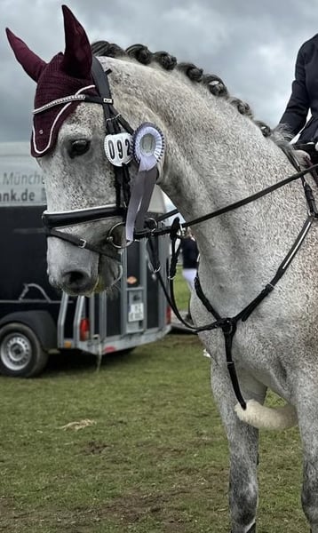 Ich biete meinen 1,60m 14J. Wallach von Coupé de Coeur x Cento zum Verkauf. Er hat gute GGA, beherrscht Fliegende Wechsel, Außengalopp, Seitengänge, macht einen tollen Sprung und wurde zu Hause bis 1,10m gesprungen. Er ist lernwillig, hat kein Problem mit Schmied, geht alleine und in der Gruppe brav ins Gelände und besitzt keine Unarten wie Steigen oder Buckeln. Mit ihm ist alles möglich, Reiten ohne Sattel/mit Halsring, Fotoshootings, Bodenarbeit, Tricks etc. Zwar koppt er, dies kommt aber in richtiger Haltung wenig vor. Ich wünsche mir für ihn einen sicheren und fairen Reiter, welcher ihn abwechslungsreich auf Freizeitniveau fördert. Equipment mit abzugeben (Dressur & Springsattel) Verkauf aus zeitlichen Gründen Bilder & Videos bei ernsthaftem Interesse KEIN NOTVERKAUF!! Platz vor Preis!!