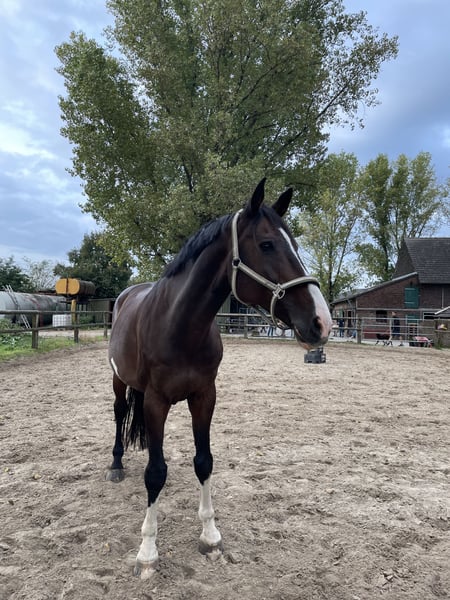 Met pijn in het hart zoek ik voor mijn lieve ruin Henning een nieuw, passend thuis. Hij is vrij mensgericht, maar heeft wel iemand nodig met paardenervaring, omdat hij soms ook testgedrag vertoont. Henning is een zeer alert paard en heeft een grappig karakter. Hij is als een grote hond die achter je aanloopt. Toch heeft hij iemand nodig die hem de grenzen aangeeft. Vrijheidsdressuur doet hij ook graag, bijvoorbeeld vrij cirkelen. Henning heeft astma, maar met de juiste verzorging en ondersteuning kan hij bewegen en gereden worden. Ik zoek een plek voor hem als recreatiepaard, waar hij zichzelf kan zijn en de juiste verzorging en huisvesting krijgt. Hij staat momenteel in een openstal buiten op een weiland en kan goed overweg met soortgenoten. Momenteel loopt hij ook barefoot. Mijn wens is dat hij een plek vindt waar hij geliefd en verzorgd wordt – geen wandelbeker! ❤️ Aangezien hij sinds een jaar van het gras heeft genoten, is een proefrit niet direct mogelijk. Voor vragen of interesse, neem gerust contact op :)