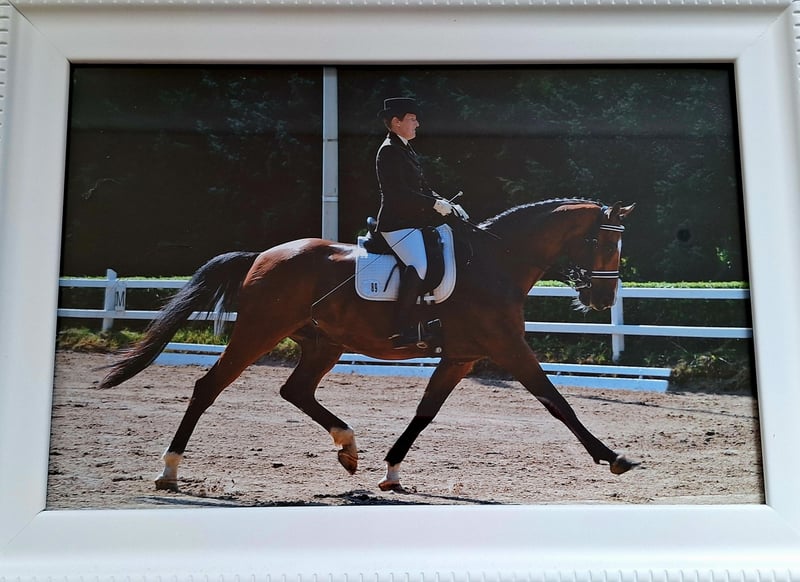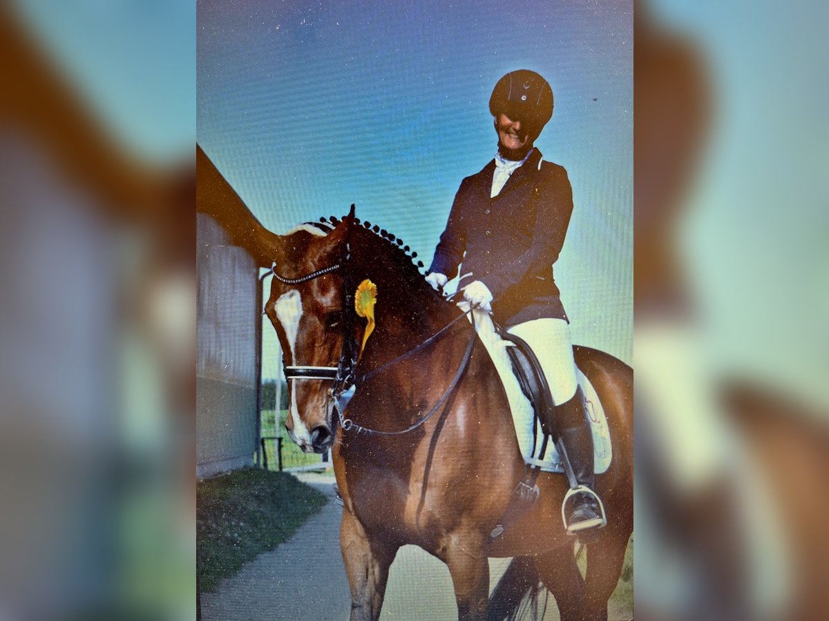 Due to downsizing, I am looking for a loving retirement home for my self-bred gelding with horse and rider experience! I have bred and trained him myself. We have been successfully competing up to M dressage level and have jumped up to L level at home. He will no longer participate in competitions, and in the last years, he will only be ridden and gymnasticized recreationally by my riding partner. I wish for him to have an experienced rider who can also assert themselves when needed! He will only be ridden out in the company of an experienced horse, as he can sometimes be a bit timid and prefers to follow. However, he can lead in familiar terrain. Candy spends the summer in the herd in the pasture and is in his box at night. He eats haylage and receives muesli, oats, and minerals. He is vaccinated against EHV, tetanus, and influenza and is regularly dewormed. He would also come with all his equipment: custom dressage saddle, bridle, winter blankets, rain sheet, sweat blankets, and hay net. This is not an urgent sale, but I could absolutely consider a good home over price. I would be happy to receive serious and genuine inquiries/messages.