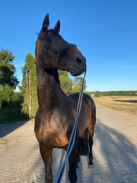 I am looking for a new person to care for my 174 cm Holsteiner gelding. Willo was introduced to M-level dressage and L-level show jumping in his youth. Despite being 22 years old, he is still in excellent shape and eager to be ridden and worked. Fair and consistent riding is immediately rewarded by him, making him a wonderful teacher both in jumping and dressage. We have been a team for about five years, and I have learned a lot from him. However, at this point in time, I am unable to provide him with the time, mental attention, and financial resources he deserves. Therefore, I am seeking an experienced individual or a family who will care for him, keep him healthy through riding or groundwork, or simply love him. About Willo and his needs: Willo simply does not like large herds. He thrives in small, quiet gelding groups (2-5 horses). He has a gentle heart, which sometimes shows a bit of a rabbit-like personality, especially around donkeys. Otherwise, he is quite easygoing and can go out in the arena or on the pasture with pretty much anyone. He walks, trots, and can canter, but only small jumps due to his age. He has not had any major issues so far, but shows signs of EOTRH, meaning his front teeth will eventually need to be extracted. I would contribute to the costs or have this done at our stable beforehand. After a period of adjustment, this would not restrict him, as he can still take in hay and grass with his lips. Recently, Willo was treated in the clinic for a molar infection. X-rays were taken, and he received proper therapy, so no further problems are expected at this time. He exhibits (not diagnosed) shivering, which I occasionally treat with devil’s claw and ginger in cycles—something we’ve never had issues with. He has a lot of equipment, which I am happy to include for an additional fee. My wish for him is a final home in a small gelding herd, with plenty of grass and 24/7 hay in winter or when pasture is not enough. Ideally, a stable where the horses are turned out in the herd from morning to evening and only housed in boxes at night. Willo needs plenty of space to lie down. He is also familiar with a paddock with ample space for resting. Of course, quality of life takes precedence over price; this is only a placeholder.