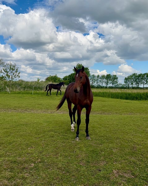 À vendre, un hongre typé né en 2023 issu d'un élevage familial. Grâce à sa grande taille et à sa tête élégante, il attire vraiment l'attention. De plus, son pedigree promet un grand potentiel sportif. Il est issu de Vatson Sitte (Cardento x Chellano Z), qui a lui-même réussi dans des épreuves de saut jusqu'à 1,60 m, et sa mère transmet également beaucoup de montabilité ainsi que de volonté de performance, ayant déjà donné naissance à un fils approuvé. Pour toute question, n'hésitez pas à appeler au : 0160-96436624