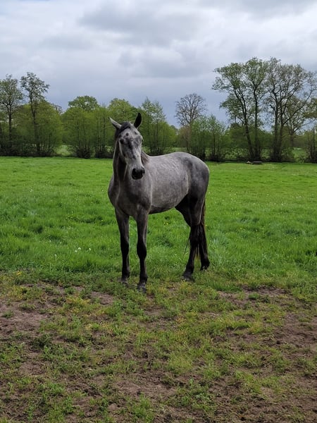 Wir verkaufen unseren Holsteiner Wallach "Condor", er stammt von Crack x Livello ab. Im Umgang ist er stets lieb und kuschelig. Seine letzten Sommer verbrachte er in großen Hengst Gruppen auf einer großen Weide, somit konnte er mit aller Zeit groß werden. Aufgrund seines aktuellen Stockmaßes von 1,86m ist er noch nicht angeritten, da wir ihm genügend Zeit zum wachsen geben wollten. Nun ist er bereit für neue Wege und das Kennenlernen des Reiters. Im Januar diesen Jahres hatte er eine Chip Op am hinteren, linken Sprunggelenk und am hinteren, rechten Knie. Die Op ist sehr gut verlaufen und er zeigt keine Auffäligkeiten in der Bwegung. Auch die Röntgenbilder aus der Klinik zeigen eine vollständige Verheilung. Laut Prognosen wird ihn die Op ihn in seinem weiteren Leben nicht beeinträchtigen. Auch einer Sport Karriere soll nichts im Wege stehen laut verschiedener Tierärzte. Auf seiner Stirn hat er zwei knöcherne Hörnchen, welche sich im Wachstum gebildet haben uns nach Rücksprache mit verschiedenen Tierärzten ein rein ästhetischer Mangel sind. Dies macht unseren Condor besonders. Wir erhoffen uns für unseren Condor ein nettes neues Zuhause zu finden. Videos, sowie auch seine Röntgenbilder können bei Bedarf gerne geschickt werden. Da wir aktuell unsere Holsteiner Zucht verkleinern, schauen Sie sich auch gerne unsere anderen Inserate an.