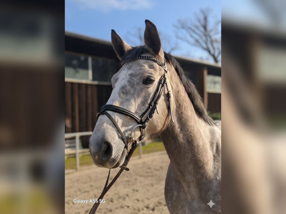 Diamore, known as Didi, is a handsome 3-year-old gray gelding suitable for higher-level sport. He is characterized by his charming demeanor and excellent temperament. Didi has a promising jumping style, is cautious, and very talented. He has recently been backed and continues to demonstrate his wonderful character. He is now looking for a new home where he can be further trained for sport and compete in show jumping events. X-rays are available and are approximately six months old. The gelding stands around 170 cm (16.1 hh) and is in excellent health. For more information, please feel free to contact us by phone.