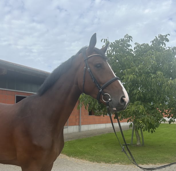À vendre, un hongre Holsteiner de 4 ans, brave et de grande taille, avec un potentiel d'amitié. Brooklyn est très bien issu de Cornet's Balou (Balou du Reventon) x Uriko x Concerto II. Il est né chez nous et a un demi-frère qui est international à 7 ans au niveau 140 sous la conduite de Bart van der Mart avec succès. Brooklyn possède trois allures de base régulées avec un trot dynamique et un galop ample. Son saut en liberté est prometteur. Le caractère de Brooklyn est particulièrement équilibré, il convient aussi bien pour le saut d'obstacles que pour le dressage, et nous pouvons également l'imaginer comme hunter. Des radiographies peuvent être envoyées sur demande.