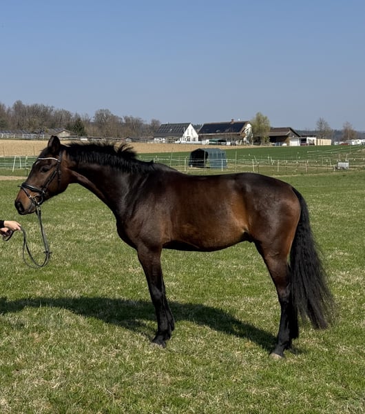 Zum Verkauf steht ein dunkelbrauner Holsteiner Wallach, 2019 geboren, mit einem Stockmaß von ca. 1,72 m. Dieser talentierte Wallach überzeugt nicht nur durch seine herausragende Abstammung (Crack v. Cornet Obolensky x Cassini II), sondern vor allem durch seinen außergewöhnlichen Charakter und seiner Vielseitigkeit. Eigenschaften: • absolut gelassen und nervenstark • brav im Umgang, auch mit Kindern • unerschrocken und stets zuverlässig • vielseitig einsetzbar (Springen, Freizeit und evtl. Vielseitigkeit) Aktuell wird er von mir auf A**-Niveau gesprungen. Trotz meiner eigenen Zurückhaltung im höheren Sport (familiär bedingt), gibt er mir jederzeit ein so sicheres Gefühl, dass ich mich langsam auch an höhere Sprünge traue. Aufgrund seines mutigen Wesens kann ich ihn mir sehr gut in der Vielseitigkeit vorstellen. Er zeigt sich im Gelände stets brav und unerschrocken, egal ob Pfützen, Wasser, kleine Baumstämme, Bergauf oder Bergab. Gemeinsam haben wir bereits ein Indoor Vielseitigkeitstraining absolviert, das er souverän gemeistert hat. Mit einem anderen Reiter zeigte er 2025 teile seines Potenzials: Innerhalb von nur 2 Monaten und 5 Turnieren wurde er bis M-Niveau vorgestellt, mit: • 2 Platzierungen in A** • 3 Platzierungen in L Zur weiteren Förderung wurde er regelmäßig und abwechslungsreich gearbeitet: • Freispringen mit durchdachten Parcours zur Schulung von Mut und Übersicht • regelmäßiges Auswärtstraining • vielseitige Ausbildung mit Gelassenheitstraining und Bodenarbeit Ich kenne ihn seit seiner Geburt, da er aus der Zucht eines langjährigen Freundes stammt. Er ist artgerecht auf einer Fohlenweide aufgewachsen und wurde stets sorgfältig und pferdegerecht gefördert. Ein Pferd mit großem Potenzial, ehrlichem Charakter und besten Voraussetzungen für Sport und Freizeit. Bei ernsthaftem Interesse freue ich mich über Ihre Kontaktaufnahme. Hinweis zum Verkauf: Aktuell habe ich zwei Pferde und aus zeitlichen sowie familiären Gründen kann ich beiden nicht mehr gerecht werden. Daher habe ich mich schweren Herzens dazu entschieden, eines der beiden Pferde in fördernde Hände abzugeben. Da mir beide sehr am Herzen liegen, fällt mir die Entscheidung unglaublich schwer und aus diesem Grund habe ich aktuell beide Pferde inseriert und werde letztlich nach dem passenden Zuhause entscheiden.