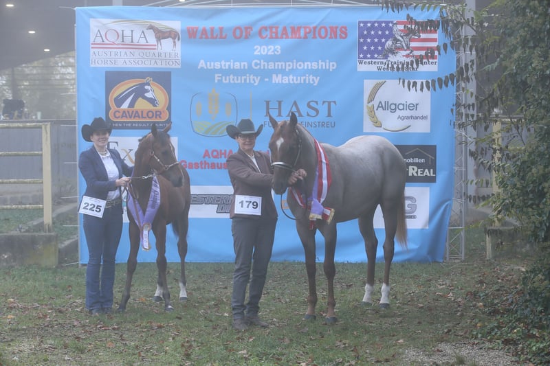 Hot Hits Only 2022 Red Roan (Overo) Hengst AQHA / APHA - doppelt registriert Von: Whatta Hit Aus der: Hot Lopin Airpower 4 Panel n/n - n/HRD - IMM n/n - OLWS n/n - EJSCA n/n Ergebnisse Farbtest: e/e A/A nd2/nd2 N/W20 Rn/n Showerfolge: Mehrfacher Klassensieger Mehrfacher Österreichischer Meister Mehrfacher Österreichischer Vize Meister Mehrfacher Futurity Champion Grand Champion Mehrfach Reserve Grand Champion Year End High Point Horse World Show Qualifier Die ersten 3 Stuten decken für €650.- (Frischsamen) Reguläre Decktaxe Frischsamen: €850.- Selbstverständlich gewähren wir eine Lebendfohlengarantie! Auch Fremdrassen sind herzlich willkommen! Weitere Infos sehr gerne telefonisch unter 0043 676 / 42 63 575 oder per Mail: mb-stallionservice@hotmail.com Zu unseren Deckhengsten zählen: Magic Bo Snapper (Palomino - Pleasure / All Around) Whatta Hit (Red Roan - Pleasure / Halter) Pocos Hollywood Ice (Champagne - Foundation) Lenas Blue Rain (Cremello - Reining / Foundation) Onelittlestepforluna (Buckskin - Reining) Whattan Exciting Hit (Chestnut -Pleasure) Hot Hits Only (Red Roan Overo - Pleasure / All Around)