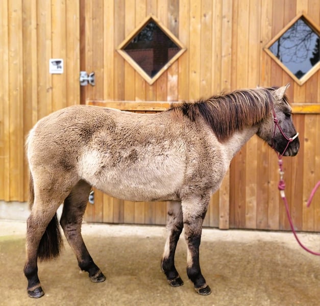 A Pony Farm Girl from Day One! A mare born here who has been a true heartbreaker right from the start! Nothing is impossible for her – this wonderful personality trait can be used to great effect to win Tyra over. Since she was a foal, she has been familiar with children, dogs, peacocks, and chickens around her. She grew up in a mixed-age herd with older mares, teenage mares, and foals of the same age. Of course, she knows the basics of foal handling, and now she’s learning the teenage horse alphabet. She’s not quite able to write yet :) but she can do basic math: “Hello, that was just a treat, not the two pieces I promised.” :) Tyra lives with us in a pasture. Any child can go to her in the box or on the pasture and bring her in. A true pony farm girl through and through! Summary Tyra: Buckskin mare, born April 4, 2023, well-socialized and raised appropriately for her age – €3,950 negotiable Please feel free to contact us personally at Tel.: 05435443 or 01705824297 (phone calls only – no messages!!!). Callback requests can only be made via Tel.: 05435443. The qualities described here are based on our experiences with the horse. Horses are LIVING BEINGS and reflect their environment!
