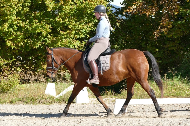 Huzule Premium Breeding Mare – Performance Tested! 6-year-old dark bay, 14.8 hh. A large, strong mare with excellent pedigree, balanced temperament, good conformation, and very good training. Suitable for dressage (KL L) and jumping (KL A); ridden and driven, confident and fearless in the field – even alone. Has completed trail rides, has tournament experience including the Huzule Trail, and is experienced in basic schooling with children. Also an excellent lunge and therapy horse, very willing, attentive, and calm during work. Very well-behaved and relaxed in handling. Suitable as a weight-carrying horse and for therapeutic use, also ideal for re-entrants. An all-round perfect horse for all disciplines! Farrier and loading well-behaved, suitable for open stalls, compatible with herd life.