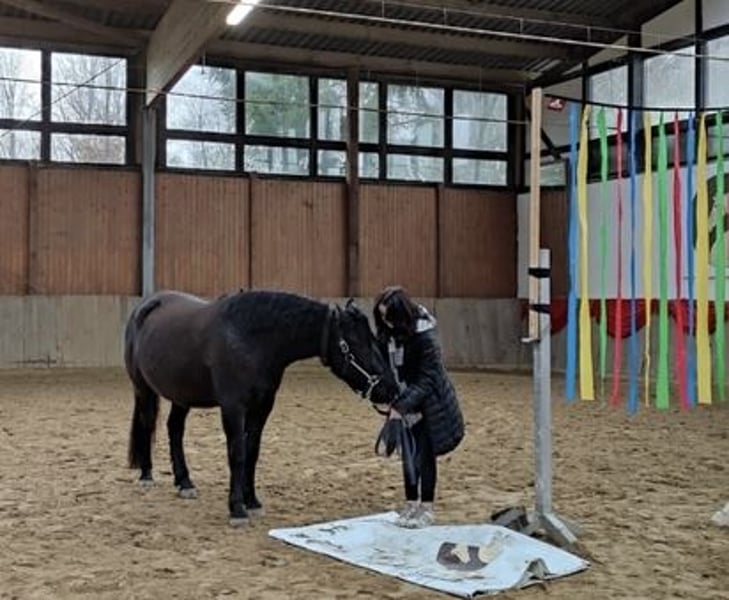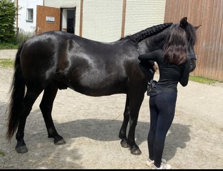 Excellent five-year-old horse / young horse in an advanced training stage. With a heavy heart, we are looking for a new, loving home for our five-year-old Huzul. He is a true heart pony: incredibly friendly, people-oriented, and open to many things – this is explicitly not a desperate sale! Height: 1.45 m Rider weight: up to 65-75 kg Color: Black / Black Mane & tail: Black-Brown He is lightly backed and knows the walk, trot, and canter on command. Under saddle, he is absolutely gentle and shows no bad habits – however, he requires someone with a clear, consistent, and experienced hand, especially with young horses. With calm, confident leadership, he works reliably and motivated. He can be ridden both bitless and with a bit; saddle and bridle acceptance are no problem. In terms of type, he is rather laid-back and appreciates a person who motivates him, provides regular training, and offers variety. He is not suitable for beginners. He needs someone who knows how to handle ponies like him, both lovingly and consistently. Upon request, I can include his very extensive, high-quality equipment for an additional fee (including saddle, bridles, pads, blankets, and much more). • No sales to dealers or intermediaries. • He is familiar with both active and open stables – low in herd hierarchy, calm, relaxed. • Not suitable for box stall housing. He should find a person who loves him, supports him, and is there for him long-term. If genuinely interested, I look forward to receiving a message and arranging a first meeting. He loads easily into a trailer. Passports, vaccination records, and health certificates are available. Inquiries and further information gladly via message or at: 0170-6835012
