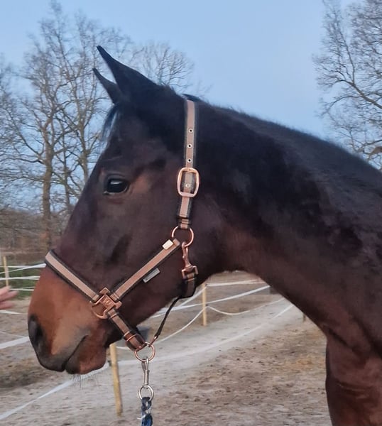 Verkaufe eine elegante irische Vollblut-Stute, geboren im Jahr 2019. Diese braune Stute besticht durch ihre ansprechende Erscheinung und ihr freundliches Wesen. Mit einem Stockmaß von 160 cm ist sie perfekt als Freizeitpferd. Sie ist nicht weiter augebildet, kennt aber Sattel, Trense und Reitergewicht. Sie wird zur Zeit wenig geareitet, geht jedoch gut an der Longe und will immer gefallen. Auch kleine Hindernise im Freispringen sowie Stangenarbeit an der Longe macht sie mit viel Begeisterung. Hunti ist sehr verschmust und liebt ihre Menschen. Sie ist geimpft, kennt Schmied und läuft bei uns Barhuf. In der Stutenherde ist sie eher Rangniedrig und verträglich. Eine vielversprechende Partnerin die für alle Sparten offen ist.