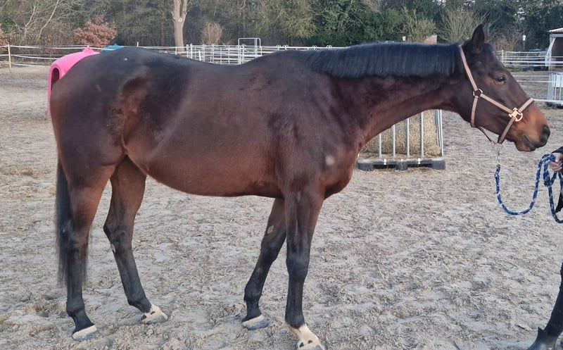 Te koop: een elegante Ierse volbloed merrie, geboren in 2019. Deze bruin gekleurde merrie valt op door haar aantrekkelijke verschijning en vriendelijke karakter. Met een stokmaat van 1,60 m is ze perfect als recreatiepaard. Ze is niet verder opgeleid, maar kent zadel, bit en het gewicht van de ruiter. Momenteel wordt ze weinig gereden, maar gaat ze goed aan de longe en doet altijd haar best om te gefallen. Ook kleine hindernissen in vrijspringen en cavaletti-work aan de longe doet ze met veel enthousiasme. Hunti is erg aanhankelijk en houdt van haar mensen. Ze is gevaccineerd, kent de smid en loopt bij ons barefoot. In de merriegroep staat ze eerder onderaan in de rangorde en is ze goed te combineren. Een veelbelovende partner die openstaat voor alle disciplines.