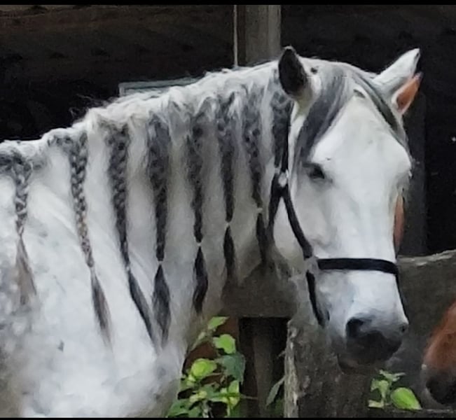 Mary is a very friendly and communicative mare from Ireland. It seems she has experienced some difficult times there. She was rescued by my friend from a riding stable in the north of Ireland. A careful trainer has ridden her, and my friend and I have gone on rides in the countryside. Mary needs clear, loving, gentle, and attentive guidance to build trust. She is completely healthy and easy to keep fed. Her teeth and hooves require regular care. Since she can sometimes be unsure when ridden, she would also be happy as a companion horse (she enjoyed grazing on pasture last summer with an older pony gelding). Regrettably, I have to part with her because I am no longer able to care for her due to health and financial reasons. She lives in the south of Hamburg, but I am now at Lake Constance and cannot take her with me. Priority goes to a good home! She will take her belongings with her. I truly hope she finds someone who accepts her as she is, because she is truly enchanting. Please feel free to call me or send a WhatsApp message at 0151-18993349. I am available Monday to Friday after 4:00 PM and on weekends.