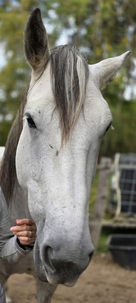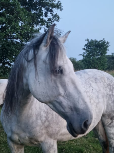 Mary ist eine sehr kommunikative freundliche Stute aus Irland. Dort schien sie Unschönes erlebt zu haben. Sie ist von meiner Freundin aus einem Reitstall im Norden gerettet worden. Sie wurde vorsichtig von einer Bereiterin geritten, meine Freundin und ich sind im Gelände geritten. Mary braucht eine klare, liebevolle und feine, achtsame Führung, dann vertraut sie auch. Sie ist kern-gesund & leichtfuttrig. Zähne und Hufe müssen regelmäßig gemacht werden. Da sie beim Reiten immer auch Mal unsicher ist, wäre sie sicher auch glücklich als Beistellpferd (war letzten Sommer mit altem Ponywallach auf Weide, das hat sie sehr genossen) Nun muss ich sie schweren Herzens abgeben, da ich gesundheitlich und finanziell nicht mehr für sie sorgen kann. Sie wohnt im Süden von Hamburg und ich mittlerweile am Bodensee, wohin ich sie nicht mitnehmen kann. Platz vor Preis! Sie nimmt ihre Sachen mit. Ich wünsche mir so sehr für sie, dass sie einen Menschen findet, der sie so nimmt, wie sie ist und sie ist zauberhaft! Ruf mich gerne an oder schick mir eine WhatsApp unter 0151-18993349 Die.-Fr. ab 16:00 und am Wochenende.