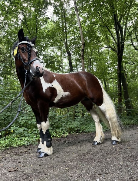 Hallo, Ich suche für meine Irish Cob Stute Elfi eine Pflege oder Reitbeteiligung ab sofort. Sie steht bei der Reitanlage Kühnen in Krefeld. Für eine Pflegebeteiligung würde ich auf jeden Fall weniger Geld nehmen als für eine Reitbeteiligung. Elfi ist eine verschmuste und zu geneigte Stute. Sie hat ihren eigenen Kopf aber genieße sehr, wenn jemand bei ihr ist und mit ihr Spaziergänge unternimmt oder kleine Tricks übt und sie liebt es auch total geputzt zu werden oder auch geduscht zu werden. Sie ist im Sattel ziemlich schwierig für Anfänger, deshalb würde ich als Reitbeteiligung nur eine erfahrene Reiterin in Betracht ziehen. Doch hier müsst man schauen wie es passt, da Elfi einen starken Charakter hat und, wie es auch für ihre Rasse bekannt ist, erst mal Zeit braucht um den neuen Reiter anzuerkennen. Für eine Pflegebeteiligung ist die optimal. Man kann mit ihr Spaziergänge machen mit ihr über den Hof gehen und vor allem sie pflegen. Sie ist pflegebedürftig und genießt es auch sehr, wenn man sie krault. Sie ist sehr liebenswürdig. Nur im Sattel muss man erst mal sie für sich gewinnen, was bei ihr einige Zeit dauert. Ich hoffe, dass ich für Elfi relativ schnell eine Pflegebeteiligung finde, die dann eventuell auch zu einer Reitbeteiligung werden könnte. Ich würde mich sehr über Ihre Nachricht freuen. Viele liebe Grüße Eyleen Kriesten