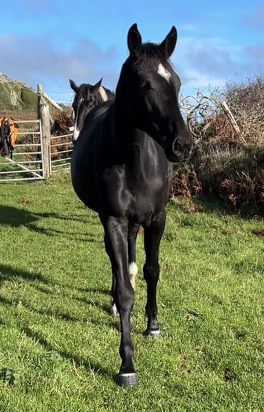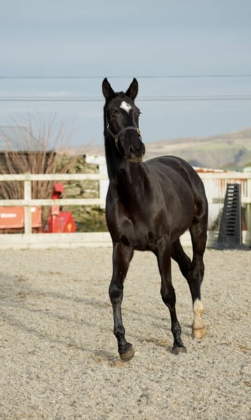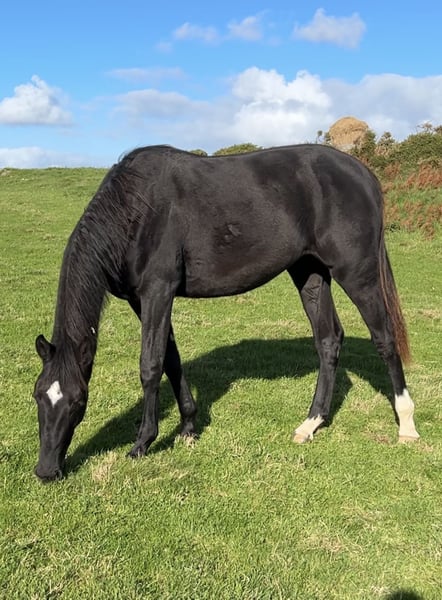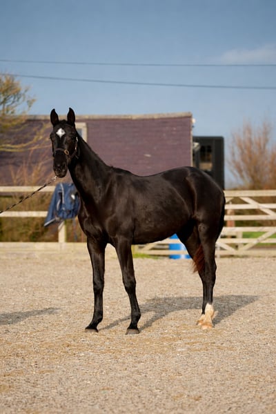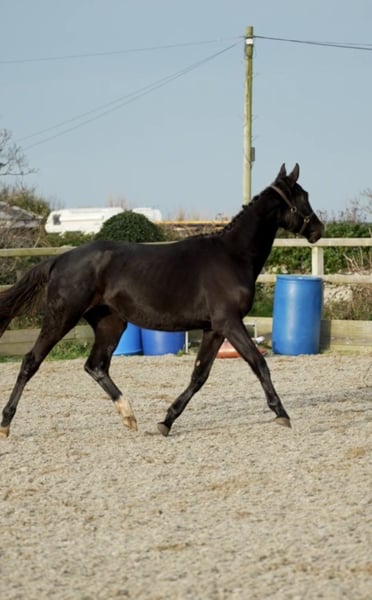 Stunning black rising 2yo filly by Lagans OBOS Quality / OBOS Quality x Lougherne Connaught. Expected to mature to approximately 16.2/16.3hh Progeny from both her sire and dam lines are actively competing at the highest international and Olympic levels. Her impressive lineage features: ❕Lougherne Connaught – international 1.60m showjumper ❕Quick Star – 1.70m Olympic showjumper ❕Cavalier Royale – puissance winner and top-❕level showjumper ❕Cassini I – 1.50m national Grand Prix stallion ❕Carrolls Flight – 1.60m international showjumper Dam herself showjumped up to 1.25m before transitioning to eventing. Second dam competed at CSI 1.30m, producing progeny at the same level. Third dam was a CCI4* eventer, with offspring reaching CCI3*. Will be available only to a dedicated showjumping or eventing home. Pepsi is a strikingly elegant filly. She would be a strong candidate for grading as a 3yo. Easy to do in every way with a super temperament.