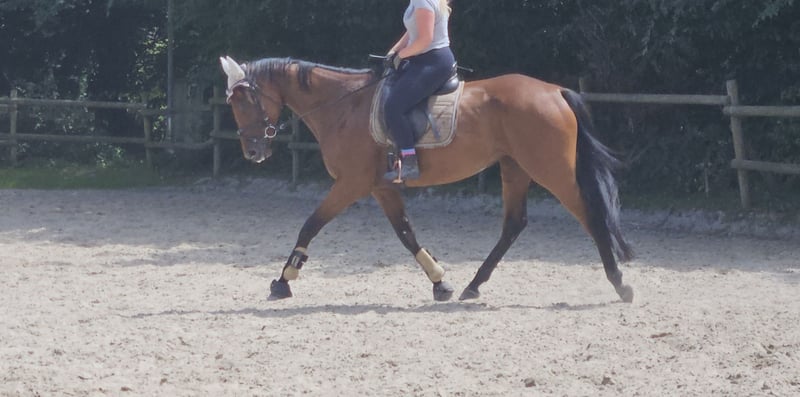Snow is a wonderful Irish horse, approximately 165 cm tall. She is not a narrow horse. :-) She has great coverage. At 5 years old, she will still grow a bit and fill out even more. Snow is a life insurance, incredibly well-behaved in everything. She has potential for dressage, jumping, and eventing. She also enjoys going out on trails. Snow is a true all-rounder, just get on and feel comfortable. She is easy to ride and extremely responsive. She is very sweet in handling, a real cuddle bug. A current veterinary examination with no findings is already available. If you are interested in videos, please contact us directly via WhatsApp at: 0177/2721831. Not through eBay classifieds. :-)