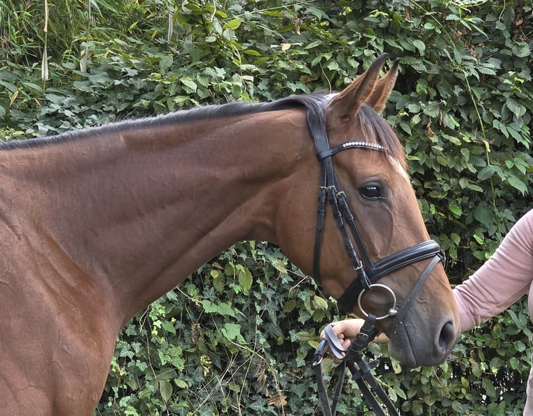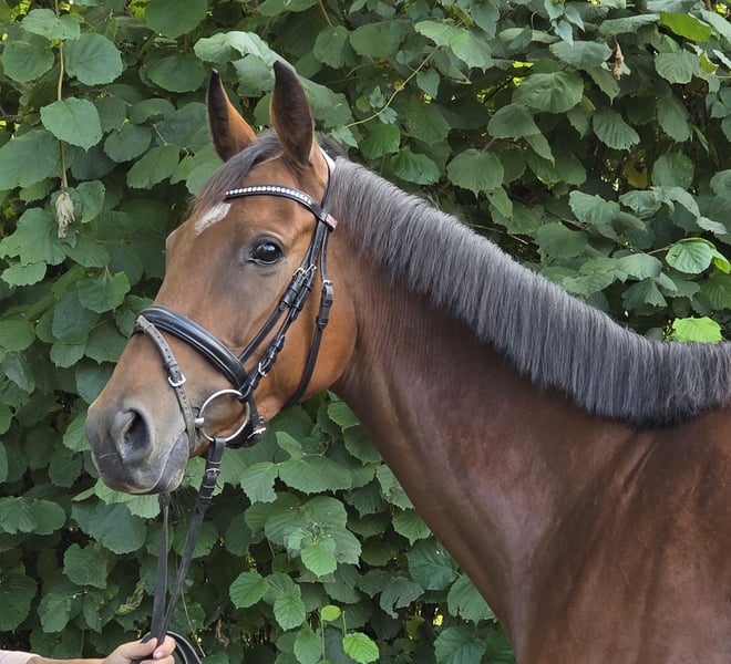 Rose is a charming Irish mare, approximately 165 cm tall. At 5 years old, she will still grow a bit and develop even more. Rose is incredibly well-behaved in everything, truly amazing. She has potential for dressage, show jumping, and eventing. She also enjoys going out on trails. Rose is a real all-rounder, just hop on and feel comfortable. She is easy to sit and extremely responsive to the aids. In handling, she is very sweet; she is a real cuddle bug. A recent veterinary examination with no findings is already available. If you are interested in videos, please contact us directly via WhatsApp at: 0177/2721831.