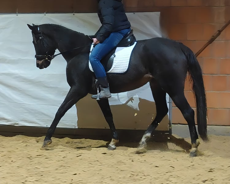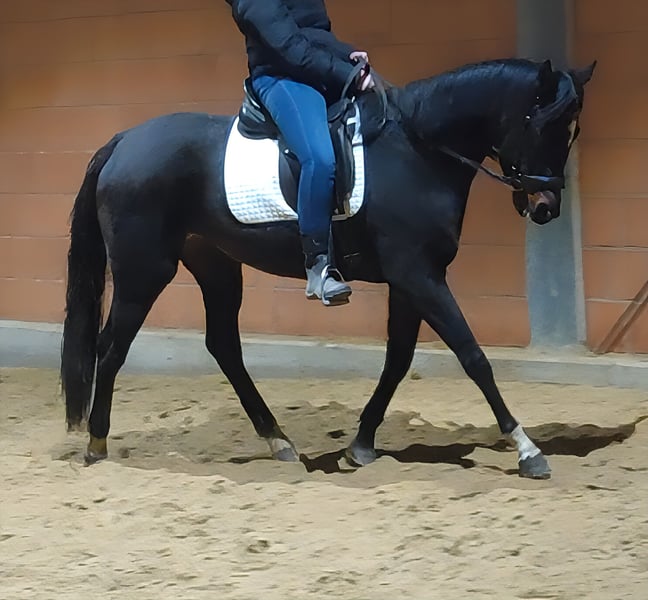 Princess, despite her young age of 4 years, is already a pleasure to ride. She is very relaxed under saddle and convinces with her wonderful temperament. Princess has been ridden both indoors, on the riding arena, and in the field (ridden here by a girl). She is sociable within the herd and always eager to learn new things. Overall, she is an ideal mare for both competitive riding and advanced leisure riding. If desired, she can be sold with complete new tack for a small additional fee. Transport can be arranged. Trade-in possible. A veterinary pre-purchase examination, including X-rays and blood tests, can also be carried out by your own veterinarian. We are happy to answer any questions by phone at 01774289729. Written inquiries (email, WhatsApp, etc.) will not be answered. We believe that if someone is genuinely interested in a horse, they will make a phone call. Calls from blocked numbers will be automatically rejected.
