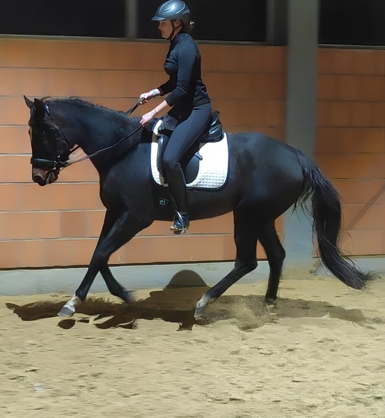 Princess, despite her young age of just 4 years, is already a pleasure to ride. She is very relaxed under the saddle and impresses with her wonderful temperament. Princess has been ridden both indoors, on the riding arena, and in the field (ridden here by a young girl). She is friendly within the herd and always eager to learn new things. Overall, she is an ideal young mare for both competitive riding and higher-level leisure riding. If desired, she can be sold with a complete set of new tack for a small additional fee. Transportation can be arranged. Trade-ins are also possible. A veterinary pre-purchase examination, including X-rays and blood tests, can be performed by your own veterinarian if preferred. We are happy to answer any questions by phone at 01774289729. Written inquiries (email, WhatsApp, etc.) will not be answered. We believe that genuine interest in a horse is best expressed by giving us a call. Calls from blocked numbers will be automatically rejected.