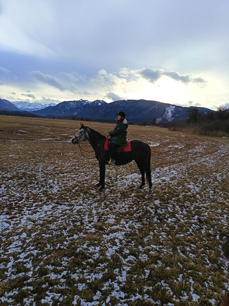 Biete liebe und unkomplizierte English Sport Horse Stute! Aufgrund von Zeitmangel verkaufe ich diese schicke Stute namens Bounty, aktuell 5 Jahre alt, ca. 160 cm groß, ein echtes Verlasspferd. Vater: Jack the Robin xx (siehe letztes Bild) Er steht im Gestüt Neustadt-Dosse und gilt dort als einer der top Vererber für die deutsche Sportpferdezucht. Er ist als Veredler nicht nur für die Zuchtrichtung in Springen und Vielseitigkeit, sondern auch für dressurbetonte Nachkommen bekannt. Bounty ist sehr anständig und unkompliziert im Umgang: Durch ihr junges Alter ging sie bei mir viele Ritte als Handpferd mit, wodurch sie schon sehr viel Erfahrung sammeln konnte und dadurch eine gute Routine im Gelände entwickelt hat, aber gleichzeitig noch Zeit bekommen hat, deshalb reiterlich noch formbar und unverbraucht ist. Sie verhält sich anständig beim Schmied und lässt sich in den Hänger schicken, sodass man sie auch gut alleine verladen kann. Bounty hat auch unter dem Reiter schon ihre ersten Wanderritterfahrungen gesammelt und zeigt sich hier nervenstark und verlässlich in der Gruppe (vorne, hinten sowie in der Mitte). Zusätzlich kennt sie Bodenarbeit nach Horsemanship und zeigt sich hier sehr kooperativ, aufmerksam und hat Lust auf mehr. Besonders schön: Sie lässt sich auch im Gelände und in der Gruppe gebisslos mit Sidepull reiten und ist dabei jederzeit händelbar. Dadurch, dass Sie in einem kleinen Offenstall steht, kennt sie auch alleine bleiben und bleibt auch hierbei sehr entspannt. Alles in Allem ist Bounty ein Pferd zum Liebhaben, Vertrauen und bereit Dein Herzenspferd zu werden!
