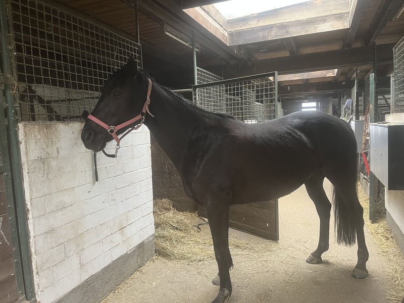 Brave Stute , lieb im Umgang , kennt Kinder , Hunde und Traktoren , sie kennt longieren , Freispringen und geht als Handpferd mit ins Gelände . Sie ist noch nicht geritten Sie ist herdenverträglich mit Wallachen und Stuten . Sie ist brav beim Schmied und Tierarzt .Sie kennt Offenstall und Boxenhaltung .