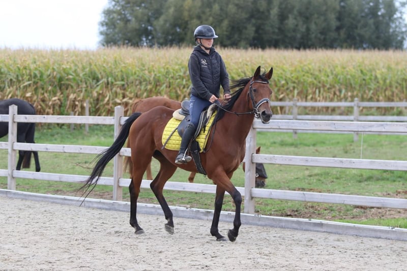 ✨ Lady – 8-jährige Stute, 1m60 ✨ Lady ist ein freundliches und unkompliziertes Pferd im Umgang. Unter dem Sattel ist sie einfach zu reiten und daher ein ideales Freizeitpferd. Sie liebt es, zu springen, geht gerne ins Gelände und passt sich leicht an. Außerdem ist sie sozial und versteht sich sehr gut mit anderen Pferden. Ein ideales Pferd, um noch viele Abenteuer zu erleben. 👉 Alter: 8 Jahre 👉 Geschlecht: Stute 👉 Stockmaß: 1m60 Mehr Informationen oder Videos? Besuchen Sie unsere Website oder rufen Sie an unter +32 475 68 22 43.
