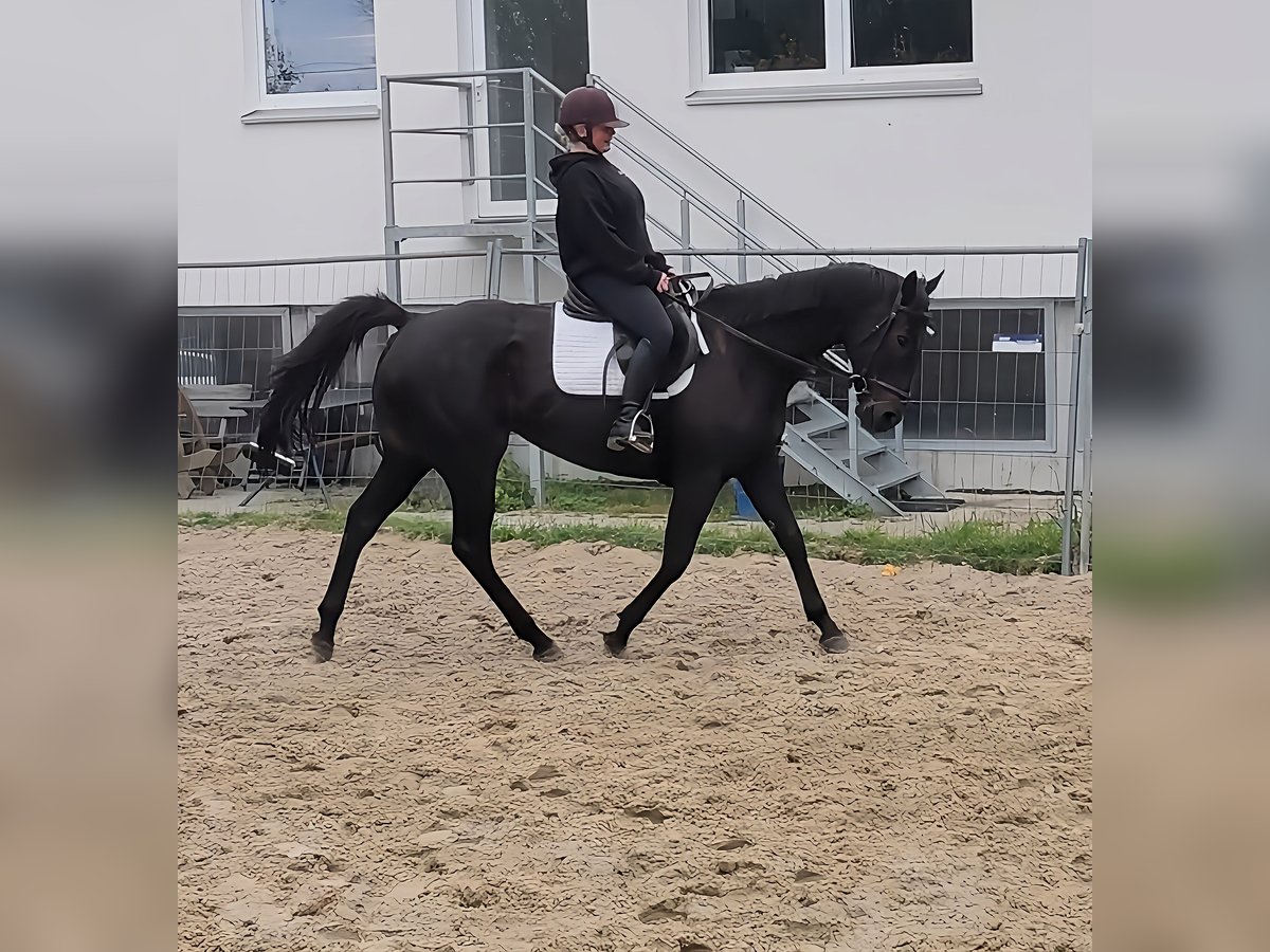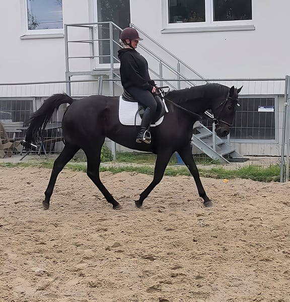 Friendly 7-year-old black mare, approximately 165 cm tall, with a great character. A horse that knows how to bring a smile to her rider's face. She has also been ridden by less experienced and nervous riders here. She always tries her best and forgives rider mistakes. Overall, a wonderful horse that is well-suited for leisure riding as well as small competitions. We can also imagine her being used in a (reasonable) riding school. She is familiar with the arena, outdoor ring, and trails, and enjoys showing her best side. Transport can be organized. If needed, she can be sold with complete new gear for a small additional fee. A veterinary pre-purchase examination can also be conducted by your own veterinarian, including X-rays and blood tests. We look forward to your call at 015172059610. Written inquiries will not be answered.
