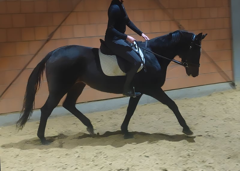 Schicke 8 j ca. 165 cm große Rappstute welche im Sport bereits Erfolge für sich verbuchen konnte. Komfortabel und angenehm zu reiten. Hier wurde sie auch schon von weniger versierten Reitern geritten wobei sie sich zuverlässig zeigte. Für den Sport, die gehobene Freizeitreiterei oder eventuell auch für einen ( vernünftigen) Schulbetrieb interessant. Bei Bedarf gegen geringen Aufpreis mit kompletten neuen Zubehör abzugeben. Transport kann organisiert werden. Tierärztliche Ankaufsuntersuchung kann auch durch Ihren eigenen Tierarzt inklusive Röntgen und Blutuntersuchung erstellt werden. Wir freuen uns auf Ihren Anruf unter 01774289729. Schriftliche Anfragen werden Nicht beantwortet. Anrufe mit unterdrückter Nummer werden automatisch abgewiesen.