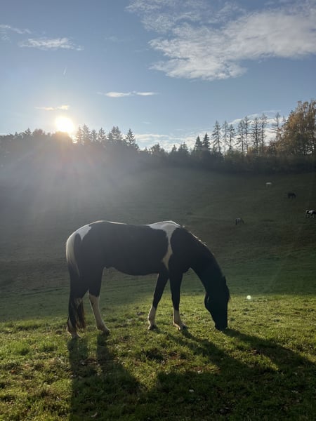 Ich suche für meinen lieben Wallach Vikram “Viky” ein zu Hause in dem er liebevoll umsorgt wird und durch seine herzensgute Art einer lieben Person Freude schenken kann. Ich kann ihn in unserem Stall nicht die optimalen Bedingungen bieten die er braucht daher suche ich ein neues Zuhause für ihn. Dazu erzähle ich gerne persönlich mehr. Viky ist ein Gangpferd. Sprich er töltet. Seine Rasse ist mir nicht bekannt, er kommt von der forgotten Horses Farm Ireland und hat einen normalen Equidenpass. Er ist vom Charakter einfach ein Engel. Er geht von alleine in den Hänger. Ist sehr vorsichtig dem Menschen gegenüber und sehr feinfühlig. Er ist sehr unerschrocken, ich habe mit ihm u.a. Feuertraining machen können und bin mit ihm letzten Sommer ein Ritterturnier geritten. Allerdings gibt es leider ein Aber. Er ist reitbar, allerdings hat er immer wieder Probleme mit der Hinterhand. Tierärztlich konnte nichts festgestellt werden. Mit einem gesunden mittel von Muskelaufbau und nicht zu viel Beanspruchung kommt er aber gut zurecht. Meine Vermutung ist, dass er in Irland als Sportpferd ziemlich getrieben wurde ( und darüber bei der Pferdeschutz Farm gelandet ist. ) Die Probleme machen sich in einer gewissen Steifheit und unsauberen Gängen bemerkbar. Aber auch dazu erzähle und erkläre ich gerne persönlich mehr. In der Herde ist er Rangniedrig und meist sogar eher für sich. Er kommt ohne Probleme bei Spaziergängen und Ausritten alleine klar. Er ist wirklich ein wunderbarer Schatz als Begleiter für jemanden der gerne viel vom Boden arbeitet und Spaziergänge genießt. und vorwiegend Freizeitmäßig unterwegs ist. Vom Boden aus könnte ich mir ihn auch sehr gut als therapeutischen Begleiter vorstellen. Weil er wirklich sehr vorsichtig und artig ist. Ich wünsche mir für ihn ein liebevolles Zuhause in dem er ankommen und ein entspanntes Leben haben kann. Er wird nicht an Händler oder Schulbetriebe abgegeben. Vorzugsweise einen Stall mit 12/12 Modus oder Paddock. Er sollte sich in jedem Fall bewegen können. Standort ist derzeit Tschechien. Über einen Transport kann gesprochen werden. Zur Rasse: ich hatte die option sonstige Rassen überehen. Das Irish Sporthorse in ihm ist ist nur eine Vermutung. Im Pass ist nichts eingetragen.