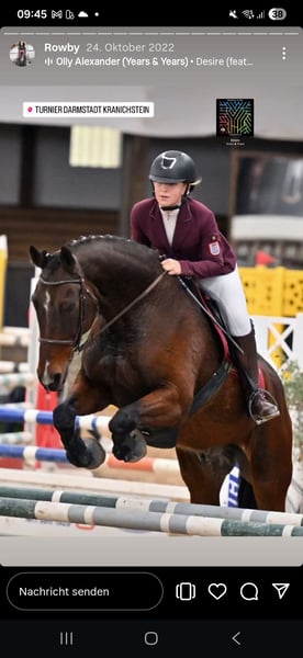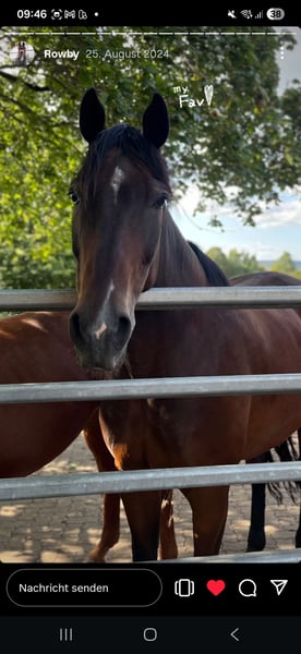 Il nostro Rowby ha dovuto interrompere la sua carriera nella scuola di equitazione, poiché dopo un intervento ai tendini e trattamenti con onde d'urto non è più in grado di sostenere sforzi intensi. È socievole, in ottima salute, con ferrature anteriori, ed è naturalmente vaccinato e sverminato. Rowby ha bisogno del suo proprietario e di spazio sufficiente. È possibile fare passeggiate a mano.