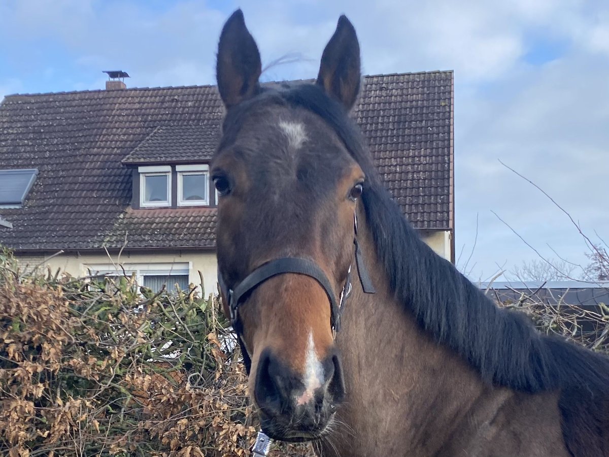 Dieser braune Wallach ist fast vier Jahre lang zum Wachsen auf der Wiese in Irland groß geworden. Seit Dezember 2025 ist er bei uns in Deutschland und gewöhnt sich an das Leben hier. Jetzt ist er seit zwei Wochen unter dem Sattel und macht seine Sache sehr gut. Im Umgang ist er noch etwas skeptisch, sobald man drauf sitzt ist die Skepsis verflogen. Umwelteinflüsse machen ihm nichts aus, er kennt Trecker Kunde und spielende Kinder. Beim Hufschmied braucht er noch Routine und etwas Ruhe. Er geht in der Halle und auf dem Platz war er auch schon ohne Probleme. Er kennt gemischte Weidehaltung, steht bei uns in der Boxenhaltung. Leider haben wir festgestellt, dass er manchmal in der Futterzeit koppt. Draußen macht er das nicht. Der Anfang als Reitpferd ist nun gemacht. Wir hoffen, er findet eine Person, die ihm das Koppen verzeiht , evtl., einen Offenstall hat, dann wird er ein patentes Pferd für lange Zeit. Der günstige Preis ist dem Koppen geschuldet.