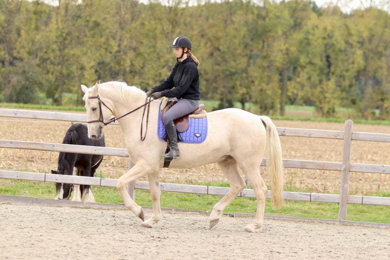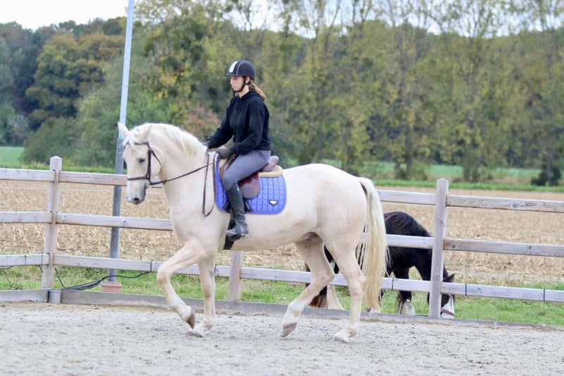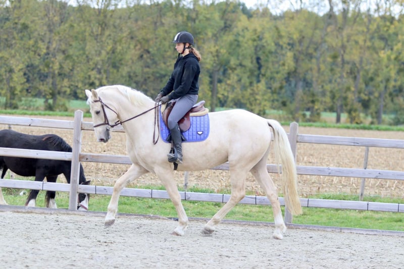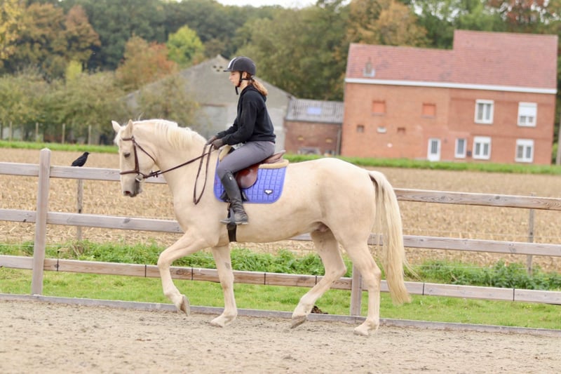 ✨ Einzigartige Farbe, einzigartige Größe! 🐴 Rasse: Irish Sport Horse 📏 Größe: 1,70 m 📅 Alter: 4 Jahre 💪 Bau: sehr breit und kräftig • Brav unter dem Sattel, aber noch grün in der Ausbildung. • Schritt und Trab sind gut gefestigt; er läuft schön entspannt im Untergrund. • Galopp braucht noch etwas Stabilität. • Superlieb im Umgang — ein echter Kuschelbär 🥰 (würde in deine Tasche kriechen!). • Verträgt sich gut mit anderen Pferden, sowohl in der Bahn als auch auf der Weide. Dieser hübsche Rüde ist aufgrund seines Alters und seiner Statur nicht für Anfänger geeignet, hat aber enormes Potenzial für jemanden mit Erfahrung. Ideal für jemanden, der einen Blickfang sucht, den er noch ganz nach eigenen Vorstellungen formen kann! 📞 Weitere Infos: +32 475 68 22 43 🎥 Für Videos: Anfrage auf unserer Website.