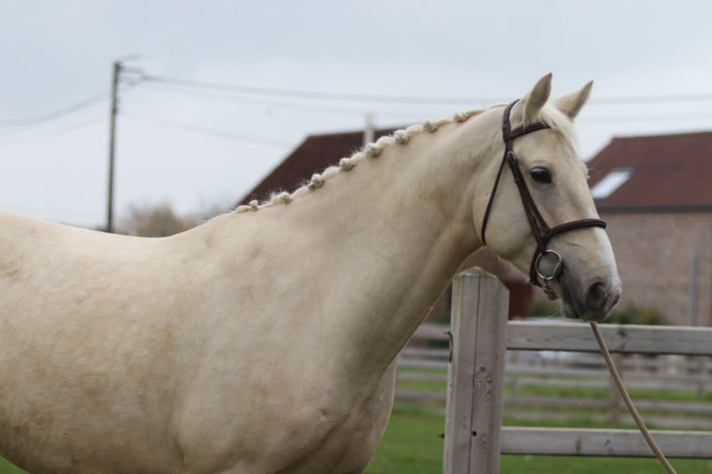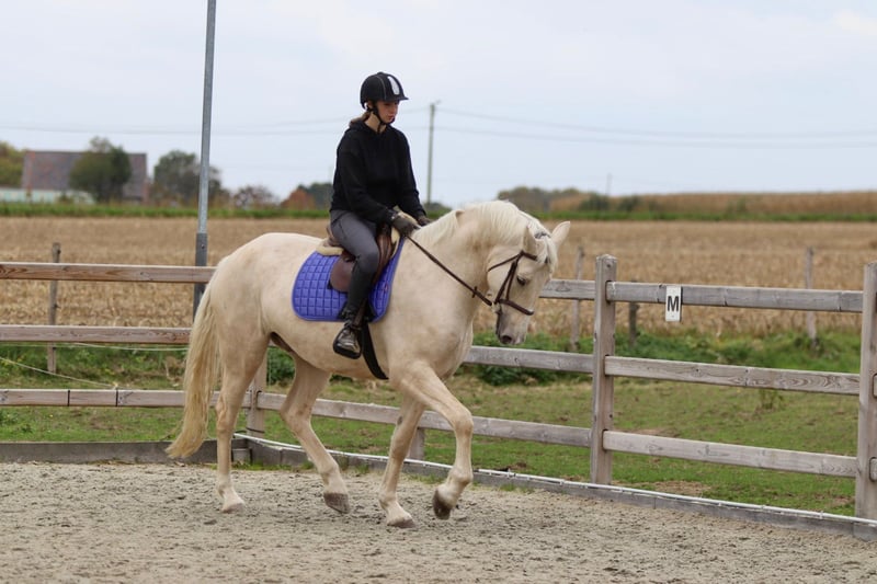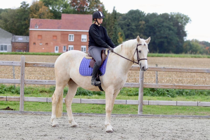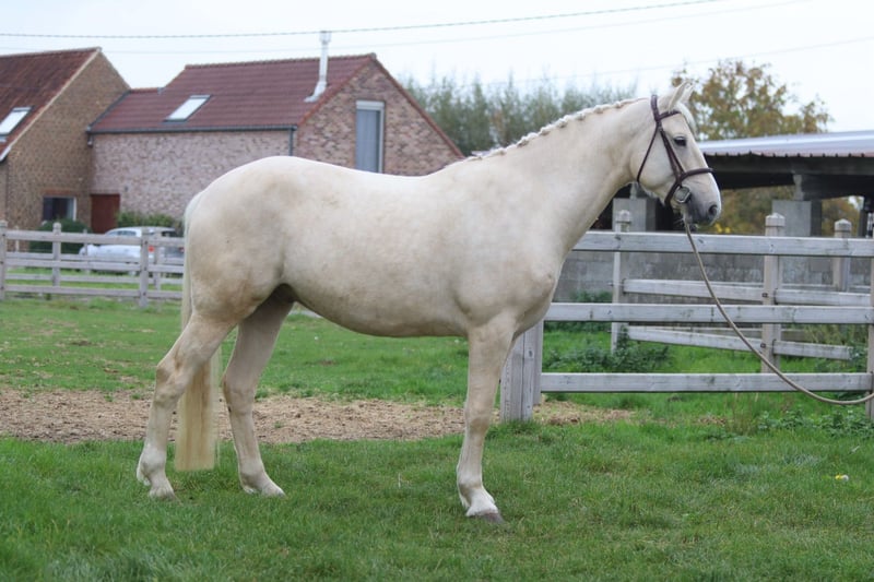 ✨ Unique color, unique size! 🐴 Breed: Irish Sport Horse 📏 Height: 16.1 hh 📅 Age: 4 years 💪 Build: very broad and sturdy - Well-behaved under saddle but still green in training. - Walk and trot are well-established; he moves nicely relaxed at the lower gaits. - Canter needs a bit more stability. - Extremely gentle in handling — a real cuddly teddy bear 🥰 (would crawl into your pocket!). - Gets along well with other horses both in the arena and in the pasture. This handsome gelding, due to his age and build, is not suitable for a beginner rider but has enormous potential for someone with some experience. Ideal for someone looking for an eye-catcher that is still fully customizable! 📞 More info: +32 475 68 22 43 🎥 For videos: ask for our website.