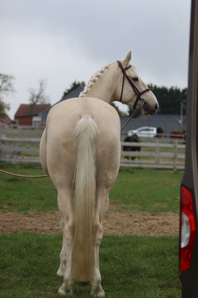 ✨ Couleur et taille uniques ! 🐴 Race : Irish Sport Horse 📏 Taille : 1,70 m 📅 Âge : 4 ans 💪 Morphologie : très large et robuste - Travaillé en selle, mais encore vert dans sa formation. - Pas et trot bien établis ; il se déplace de manière détendue et fluide. - Galop nécessite encore un peu de stabilité. - Très gentil en main — un vrai nounours 🥰 (il se blottirait dans votre poche !). - S’entend bien avec d’autres chevaux, aussi bien en carrière qu’au pré. Ce beau hongre, en raison de son âge et de sa carrure, ne convient pas à un cavalier débutant, mais il possède un potentiel énorme pour quelqu’un d’expérimenté. Idéal pour celui ou celle qui souhaite un cheval qui attire tous les regards, encore entièrement à former selon ses souhaits ! 📞 Plus d’informations : +32 475 68 22 43 🎥 Pour des vidéos : demandez notre site internet.