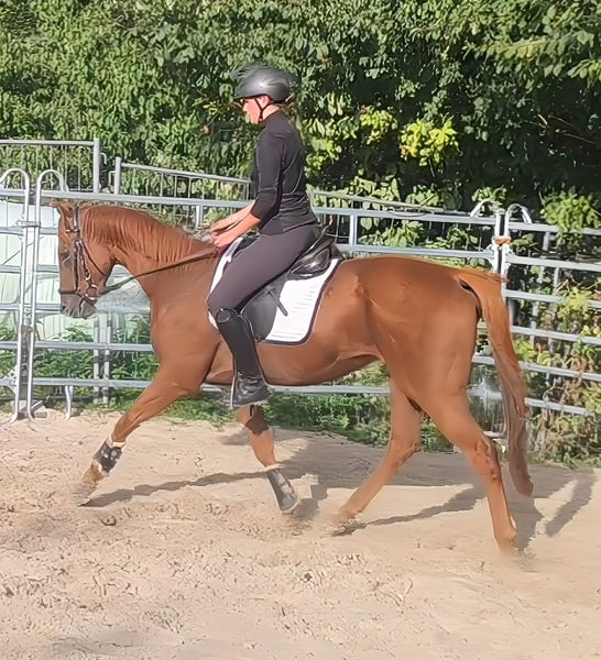 Barney est, malgré son jeune âge de 4 ans, très agréable à monter. Barney a également été monté sans problème par des enfants ici. C'est un hongre réfléchi qui essaie toujours de bien faire et de donner le meilleur de lui-même. Il est confortable à mettre en main. Grâce à sa taille idéale d'environ 165 cm, il convient aussi bien aux grands qu'aux petits cavaliers. Bien qu'il soit formé comme cheval de concours avec suffisamment de talent, il promet également de devenir un excellent cheval de loisir. Le transport peut être organisé. Si besoin, il peut être cédé avec tout nouvel équipement complet moyennant un léger supplément. Un examen vétérinaire d'achat peut également être effectué par votre propre vétérinaire, y compris des radiographies et des analyses de sang. Les demandes doivent être faites uniquement par téléphone au 01774289729. Nous ne répondons pas aux demandes écrites.