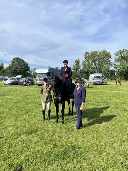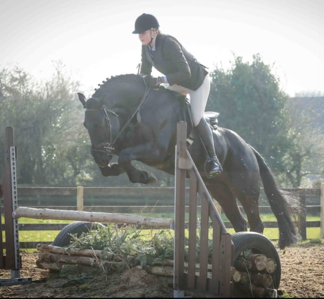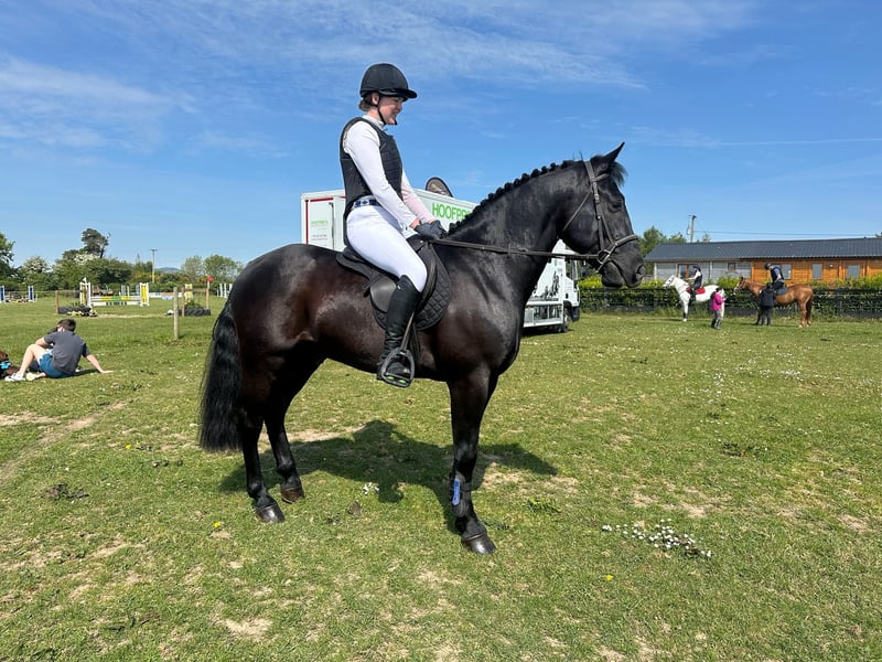 ⭐️Rinneroon Blue Champion ⭐️ 6 year old, Full Irish draft gelding Jet black with temperament to die for. Measured in at 15.2 By Zeus of the blues out of a holy cross mare Exceptionally good hunter, has hunted two full seasons with the Bree foxhounds in county Wexford with both a lady and a child rider where he has crossed country such as double ditches, banks , walls , wire and hedges All with exceptional manners Competed in jump cross, showjumping ,arena eventing competitions, working hunters, unaffiliated one day events , pony club lessons and rallies and performance Irish draft Dublin qualifiers. Has also successfully competed at the equestrian interschools competitions with a 12 year old girl leading to an individual win and many team placings in the novice competitions Has successfully shown under side saddle and in the small hunter/ 158 intermediate SHP classes A few results to mention: Won Reserve Champion 158 intermediate show hunter pony class in Adamstown show Won the small hunter class in at the Waterford IPS summer show Won the combined Side Saddle class in Adamstown show Won the 158cm intermediate Working hunter class at the Waterford IPS summer show And many more placings Very quiet and easy ride would suit any rider for a multitude of different disciplines. Loads into a lorry, horse box or 3.5t with ease, easy to catch in the field and stable, can be clipped alone and is good for the farrier Clean Set of Xrays Based in county Wexford,Ireland 🇮🇪