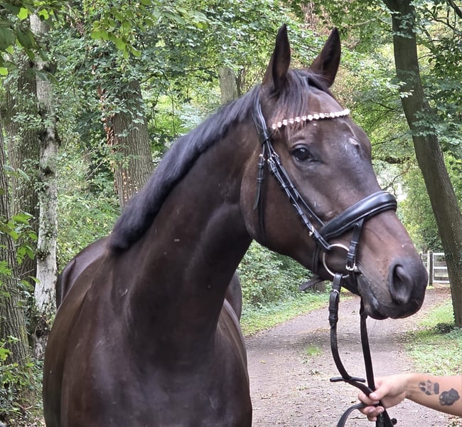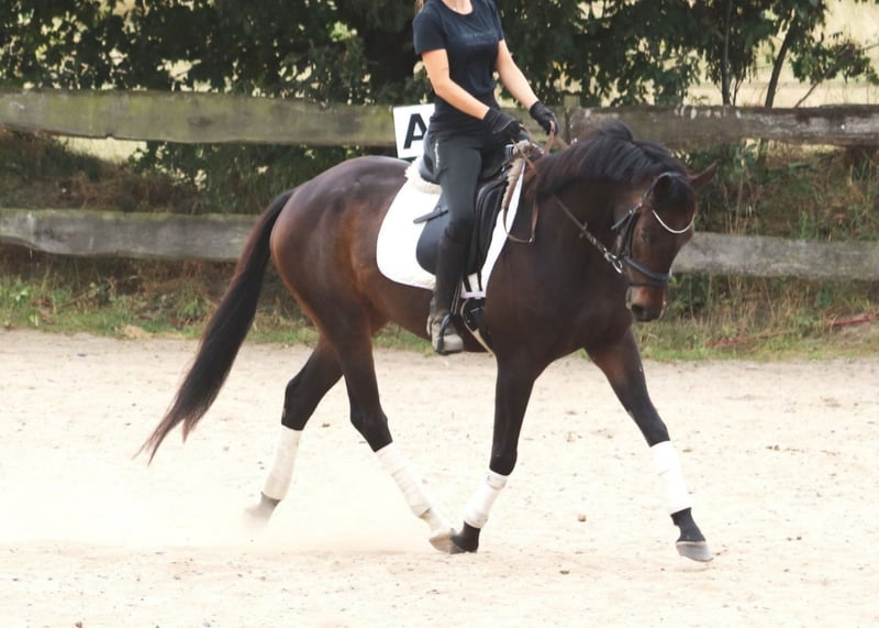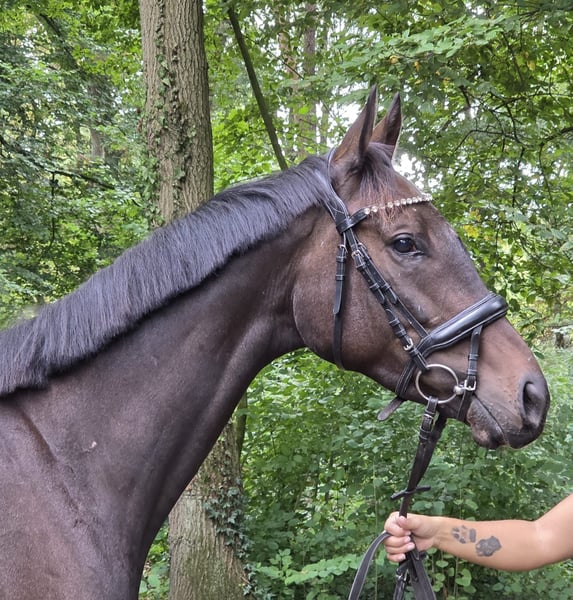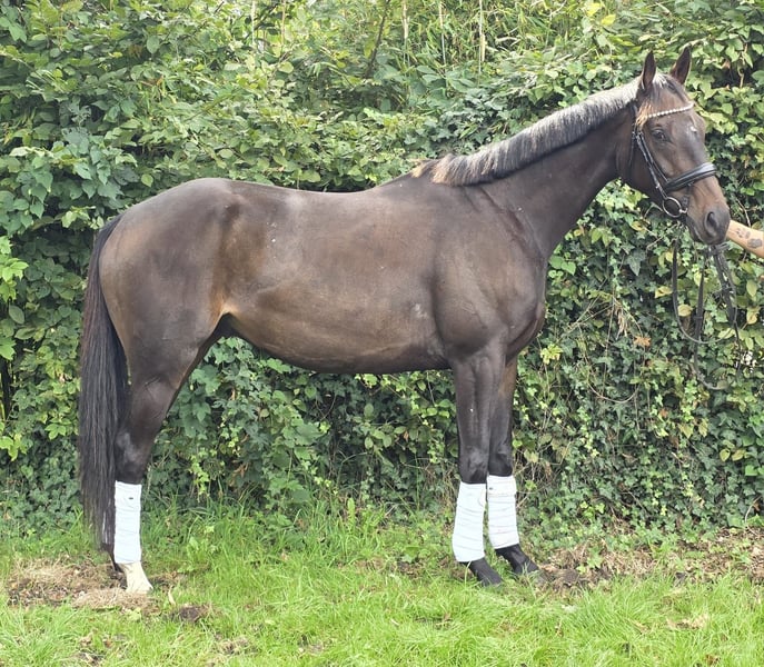 Archie is a approximately 165 cm tall Irish gelding with full papers. This little man is a fantastic horse for ladies and juniors. Archie is a horse with a lot of potential, which really needs to be highlighted. His basic gaits are of high quality, especially his well-balanced uphill canter that makes riders' hearts race. :-) Additionally, Archie has a great jump, with good technique and ability. His character is incredibly sweet, cool, relaxed, and fearless, like an old pro. He always wants to please. Archie is ridden according to his age and he regularly goes out for trail rides with us. This horse has been incredibly strong in every situation so far, truly remarkable. A recent veterinary examination is already available. If you are interested in videos, feel free to send us a WhatsApp, and for more information, please call: 0177/2721831.