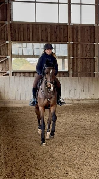 6 jähriger Wallach v. Lucky Boy x Olympic Lux. Bis 120 cm platziert. Ein sehr leichtrittiges, feines Nachwuchspferd. Zeigt sich beim springen mit sehr viel Qualität und sehr guter Art am Sprung. Absolut nicht guckig am Sprung und durch seinen guten Rhythmus hat man immer eine gute Distanz zum Sprung. Sicherlich auch geeignet für die Vielseitigkeit. Aktuelle Röntgenbilder vorhanden.