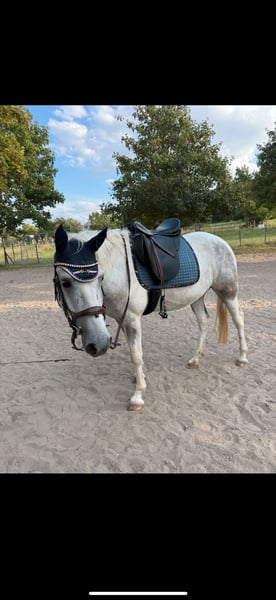 Ich suche für Mocklers Hill George (genannt Georgie) ein liebevolles, pferdegerechtes Zuhause mit erfahrenem, einfühlsamen und geduldigem Reiter. Rasse: Irisches Sportpferd Alter: 7 Jahre Geschlecht: Wallach Stockmaß: ca. 1,55 m Ausbildungsstand: angeritten Georgie ist ein absolut ehrlicher, lernwilliger junger Wallach mit viel Herz und Charme. Er ist in allen drei Grundgangarten angeritten – sehr brav wenn er die nötige Sicherheit bekommt und stets motiviert –, zeigt im Galopp noch Unsicherheiten im Takt und neigt im Trab gelegentlich zum Tölten (meist auf engeren Linien aufgrund von Balance/ Kraft). Er bemüht sich alles richtig zu machen, braucht dabei aber einen sicheren, einfühlsamen Reiter, der ihm mit Ruhe und Klarheit sowie den nötigen Halt gibt. Im Gelände muss er bestärkt und souverän begleitet werden – hat er Vertrauen gefasst, macht er toll mit. Georgie bringt viel Potenzial mit, besonders für die Dressur – bei entsprechender Ausbildung wird er sich sicher sehr gut entwickeln. Auch freispringen meistert er mit Übersicht und Geschick. Er ist barhuf, war bisher in meinem Besitz nie krank und zeigt sich im täglichen Umgang stets freundlich und kooperativ. Ich gebe Georgie schweren Herzens ab, da sich beruflich viel verändert hat und auf Dauer die Zeit fehlt, ihm die Förderung zu geben, die er verdient. Im Preis enthalten: * Trense mit Gebiss * Gamaschen, Hufglocken * Fliegenhauben & -masken * Halfter * 5 Decken (verschiedene Ausführungen) Komplett neuwertiger Sattel (6monate alt) und frisch angepasst kann gegen Aufpreis mit erworben werden. Kontakt: 017680128637 Nur in fördernde Hände mit Erfahrung und Zeit abzugeben. Kein Händlerverkauf. Kein Reitschulbetrieb.